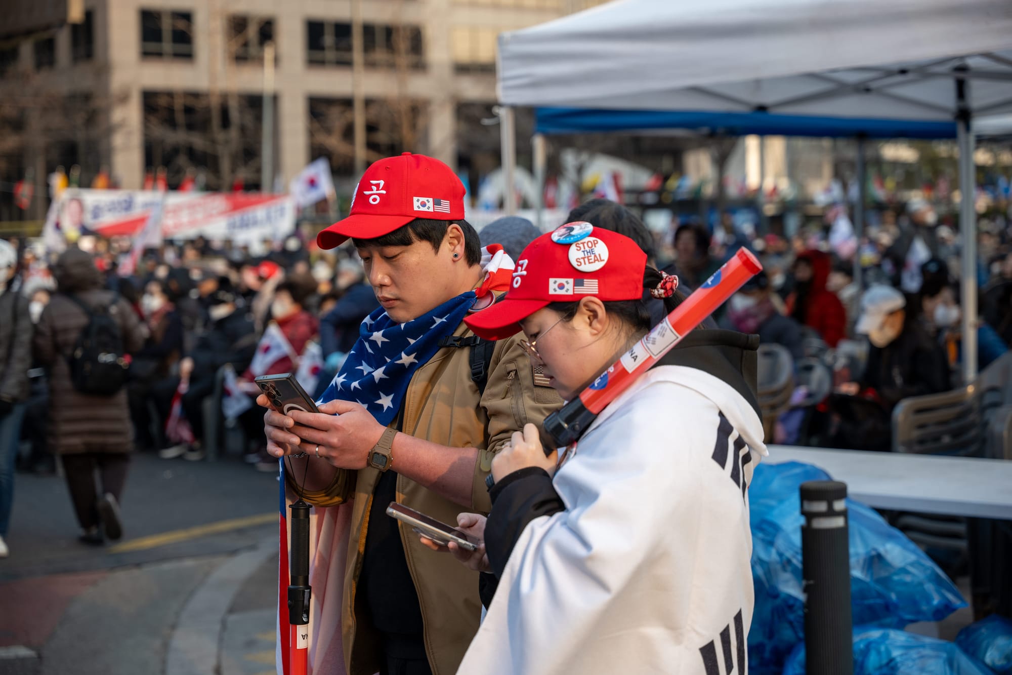 There was a huge far right/MAGA protest going on one day in Seoul which was fascinating to see. Never thought I'd see so much MAGA crap in Asia. I believe this was related to the former president declaring martial law a few months before. Very bizarre.