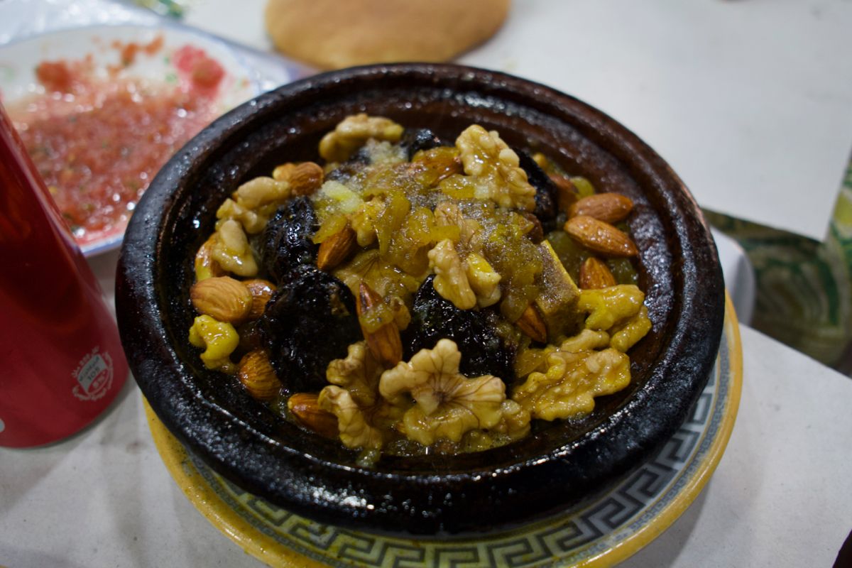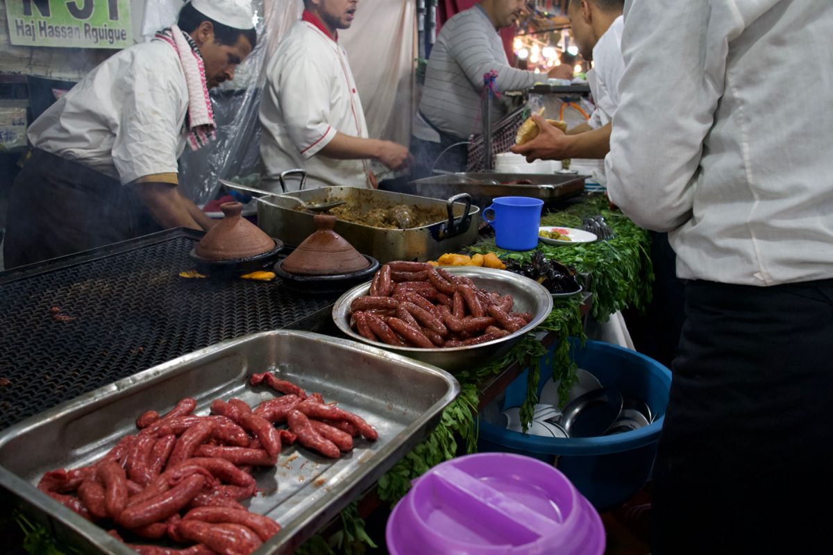 After some walking/getting sick of being hassled, we sat down at a place that looked like it was serving lots and lots of food quickly. We both ordered some variation of tagine — Morocco's signature dish — along with some blood sausage and various grilled vegetables and bread. In a fast-paced street food environment make sure you keep track of everything you order — not surprisingly we were introduced to the classic Moroccan scam of ripping off tourists at this particular stall. I let my inexperience get me here, I knew we were being charged almost double (still only like $20USD total for our meal) so I decided to just be a passive bitch and take it as a lesson learned. It was still a good meal and despite the dishonest check, the employees did their job well. Don't let this scare you away, though, show some confidence in your demeanor and do your due diligence on tracking your food prices and you'll be fine.