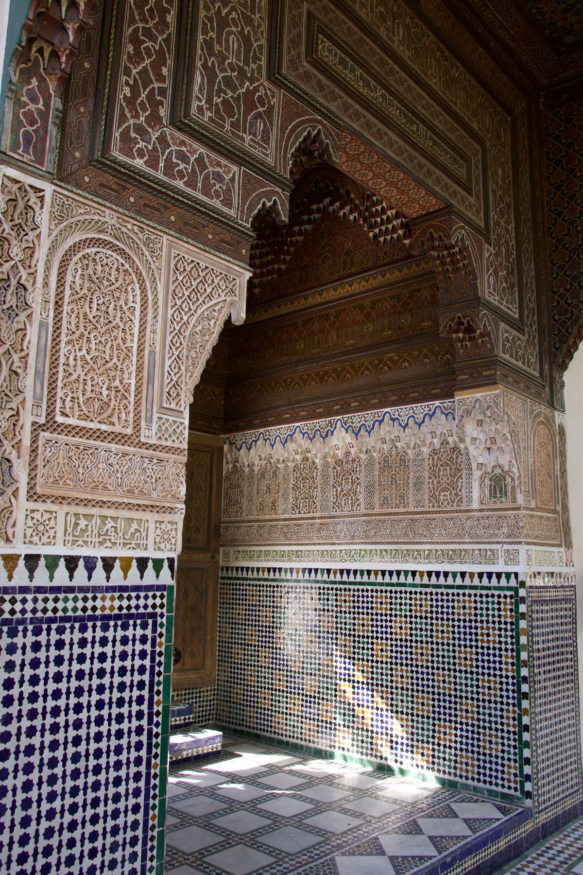 Saddien's Tombs are located in the mellah, and are another good photo opportunity and look into the intricacy of century old Moroccan architecture and design. Another one of Marrakech's more famous mosques, Mansouri mosque, is also adjacent to the tombs.